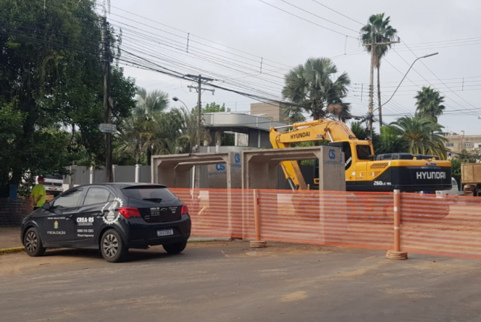 Uma obra de desvio de canalização do Arroio Mauá, em Sapiranga, foi fiscalizada na última semana pelo agente fiscal Adriano Azevedo de Ávila, da Inspetoria de Novo Hamburgo. A ação, como parte da fiscalização de rotina, verificou o registro da empresa responsável pela execução do serviço, bem como as responsabilidades técnicas relacionadas aos projetos e execuções da obra.