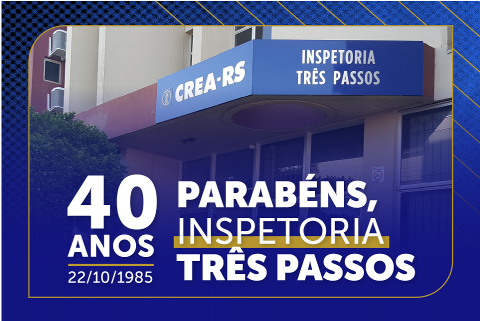 No dia 22 de outubro de 1985, nascia a Inspetoria do CREA-RS no município de Três Passos, que hoje completa 40 anos de atuação, sempre com compromisso com o desenvolvimento da Engenharia, Agronomia e Geociências na região!