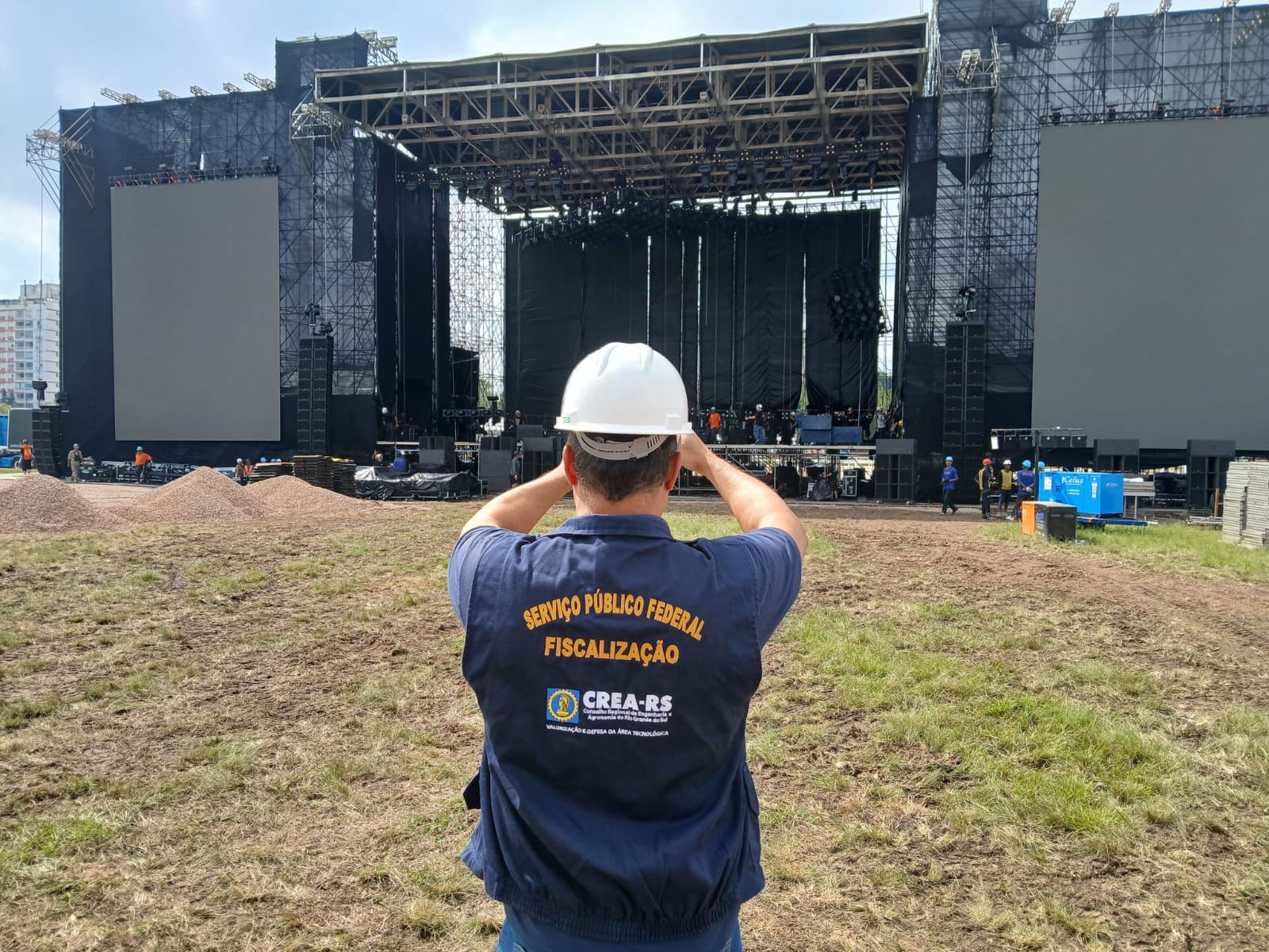 Há poucos dias de um dos shows mais aguardados do ano, a fiscalização do CREA-RS esteve presente para garantir que as estruturas temporárias montadas para receber o evento estejam em conformidade com as normas técnicas vigentes e sob responsabilidade de empresas e profissionais legalmente habilitados.