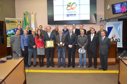Profissionais e vereadores em homenagem aos 80 anos do Conselho. Créditos: Arquivo CREA-RS