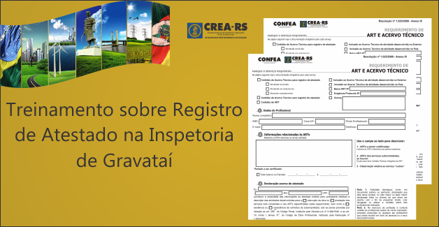 No dia 26 de novembro, em Gravataí, haverá um treinamento específico para explicar aos profissionais, aos representantes de empresas e aos membros de Comissão de Licitações os procedimentos relativos ao Registro de Atestados de Obras e Serviços Técnicos das áreas de Engenharia, Agronomia, Geologia, Geografia e Meteorologia. O encontro tem como objetivo esclarecer dúvidas sobre o correto preenchimento da Anotação de Responsabilidade Técnica (ART) e a documentação exigida para realizar o Registro.
