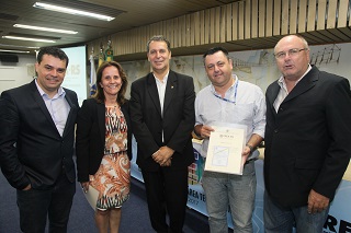 Logo depois o coordenador e o adjunto das Inspetorias, Geólogo e Eng. Seg. Trab. Pablo Souto Palma e Eng. Agr. Walmor Luiz Roesler, respectivamente deram início à posse dos representantes de Zonal e a entrega de carteiras dos inspetores.