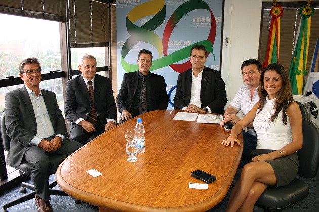 A nova diretoria da Associação Gaúcha de Empresas de Obras de Saneamento (Ageos), composta pelo presidente, administrador de empresas Carlos Alberto Peixoto, Engenheiros Civis Odilon Menezes, Stephania Portella Fração, Varcedi Pacheco e o Geólogo Eduardo Antônio Carvalho, esteve na sede do CREA-RS, na tarde de quinta-feira (05), para um encontro de apresentação à nova presidência do CREA-RS. Durante a visita, trataram sobre diversos assuntos referentes à Engenharia e sobre a aproximação da entidade com o Conselho. “Queremos nos aproximar do CREA-RS, firmar parcerias e realizar atividades técnicas em conjunto”, afirmou Peixoto.