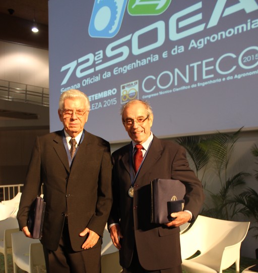 Dois Engenheiros Agrônomos do Rio Grande do Sul, Luiz Pinheiro Machado e Mario Hamilton Vilela, recebem a Medalha ao Mérito pelos serviços prestados ao Sistema Confea/Crea na abertura da 72ª Soea, em cerimônia ocorrida nesta terça-feira, 15 de setembro, em Fortaleza (CE).