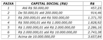 Para as pessoas jurídicas, os valores obedecem aos seguintes parâmetros: