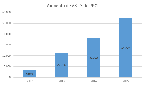 Houve um incremento em mais de 700% no número de registro de Anotações de Responsabilidade Técnica de PPCI. Enquanto no ano de 2012 foram recolhidas 6.679, em 2015 foram registradas 54.700 ARTs.