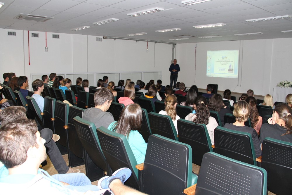 O inspetor-secretário da Inspetoria do Conselho Regional de Engenharia e Agronomia do Estado do Rio Grande do Sul (CREA-RS) em Erechim, Eng. Civil João Aleixo Brusch, esteve na Universidade Federal da Fronteira Sul - Campus Erechim, na última sexta-feira (4) quando palestrou para estudantes e docentes do curso de Engenharia Ambiental. Foram abordadas questões relacionadas às atribuições profissionais, exercício da profissão e sistema do Conselho Federal de Engenharia e Agronomia (Confea). A palestra foi organizada pela coordenação de estágios do curso.