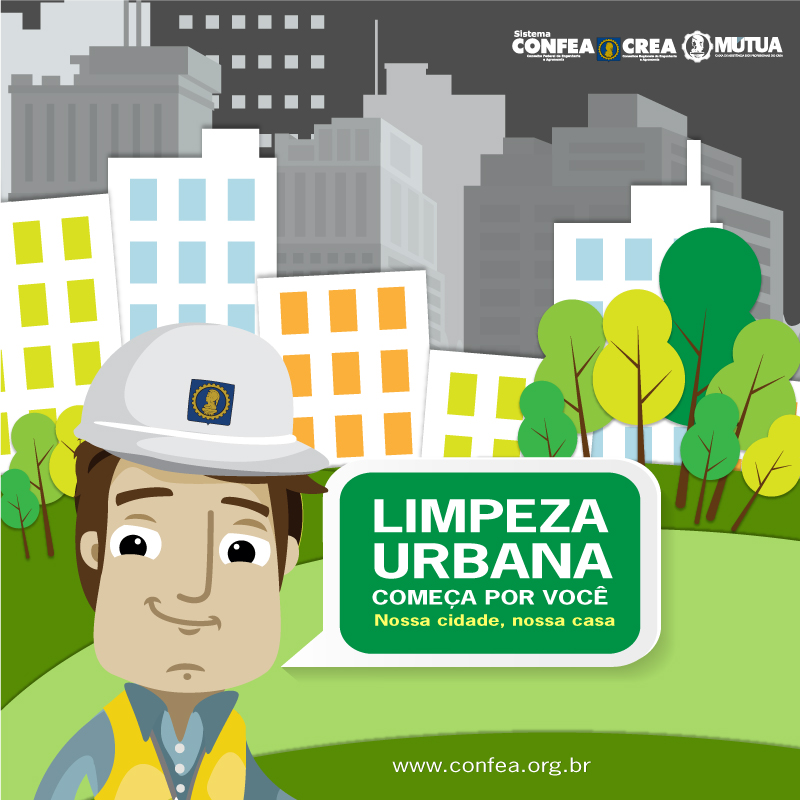 O Sistema Confea/Crea e Mútua lança neste mês de março a campanha Limpeza Urbana Começa por Você. A ideia é que cada um, a começar pelos profissionais reunidos no Sistema, exerçam a prática diária de uma nova postura diante de pequenos hábitos, que refletem na limpeza urbana e, extensivamente, em nosso meio ambiente, ou seja, uma conduta sustentável.
