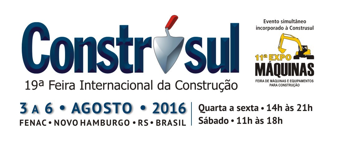 Reforçando seu papel fundamental de alavancar os negócios na cadeia produtiva da construção civil, a 19ª Construsul – Feira Internacional da Construção será realizada de 3 a 6 de agosto, nos pavilhões da Fenac, em Novo Hamburgo, RS. Atendendo a pedidos, neste ano a Construsul terá horário diferenciado no sábado, das 11h às 18h. Nos demais dias, o horário permanece o tradicional, das 14h às 21h.