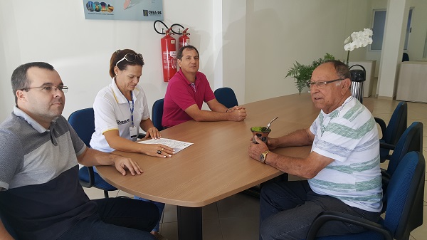 Inspetores e agente fiscal se reúnem com presidente de hospital. Créditos: CREA-RS