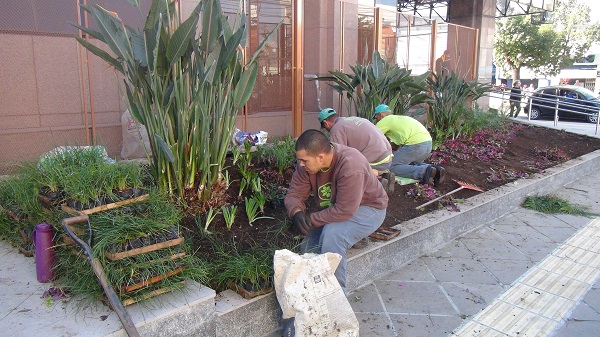 Após a conclusão das obras de acessibilidade, foi priorizado o paisagismo no jardim, realizado em dois dias e envolveu os seguintes passos: nivelamento de canteiros, tratamento, podas, plantio, relocação de plantas, divisão de touceiras e limpeza.