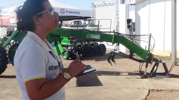 Agente fiscal Raquel Fortes durante fiscalização na Expointer . Créditos: Arquivo CREA-RS