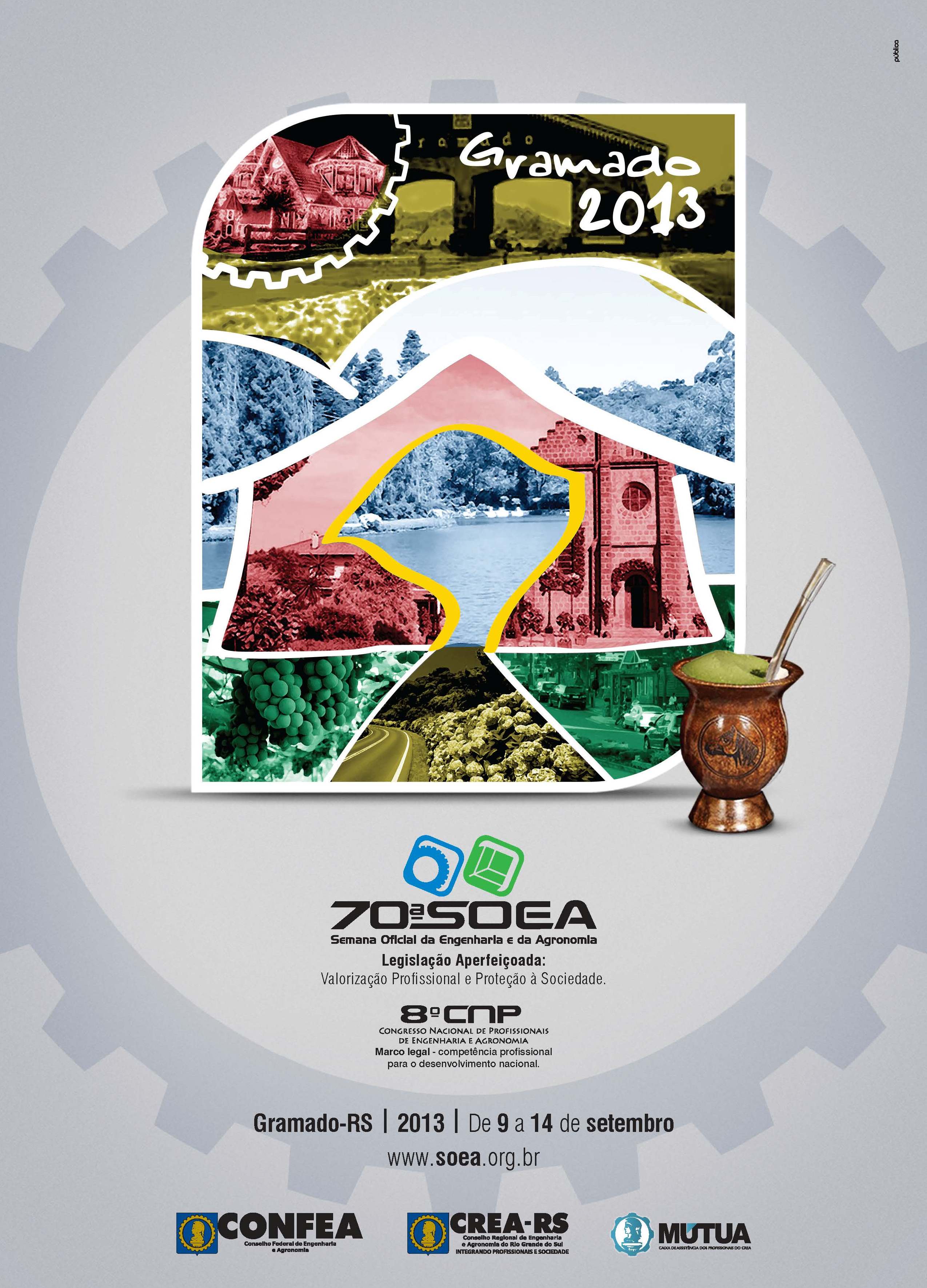 Durante a reunião do Colégio de Presidentes, o secretário da Comissão Organizadora da Soea (ConSoea), Renato Costa, comunicou que a cerimônia de lançamento oficial da 70ª Soea (Semana Oficial da Engenharia e da Agronomia) e do 8º CNP (Congresso Nacional de Profissionais) será no dia 18 de abril em Porto Alegre/Rio Grande do Sul.