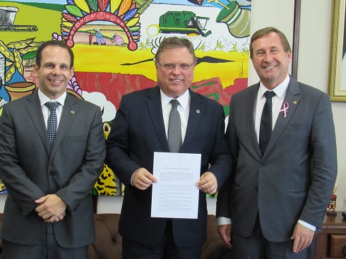 Secretário Luis Eduardo Pacifici Rangel, ministro Blairo Maggi e o presidente Joel. Créditos: Confea