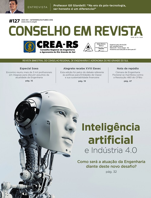 A edição 127 da publicação trimestral do CREA-RS vem recheada de bons assuntos da área tecnológica. Na capa, uma reportagem sobre Inteligência artificial e Indústria 4.0. Estamos a bordo da Quarta Revolução Industrial, que terá um impacto mais profundo, porque transformará completamente a forma como vivemos, trabalhamos e nos relacionamos. Conversamos com especialistas que falam sobre a Engenharia nas fábricas inteligentes que envolvem a comunhão entre o elemento humano e os sistemas digitais, mentes e máquinas.