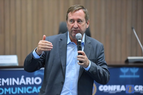 A política de realização de seminários “é uma estratégia voltada para a equipe que está na ponta para que a gente possa dar unicidade de ação no sistema profissional”. O presidente afirma que o Confea tem buscado trabalhar juntamente com o Colégio de Presidentes, com a Mútua, com as coordenadorias, com o CDEN. “Assim, a gente trabalha como o Sistema Confea/Crea e Mútua. Em 2018, isso acabou recebendo destaque, quando deveria ser o normal. Temos esse interesse de integrar a comunicação de todos os Creas, em termo de linguagem e de materiais, para termos uma maior eficácia. Essa integração não daria certo se não houvesse essa integração maior”.
