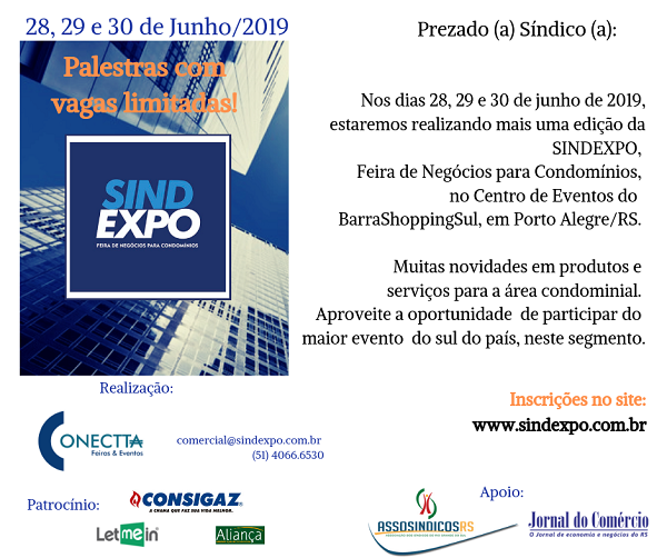 Considerada a maior feira deste segmento no Sul do Brasil, a SindExpo acontecerá nos dias 28, 29 e 30 de junho, no Centro de Eventos do BarraShoppingSul, em Porto Alegre (RS).