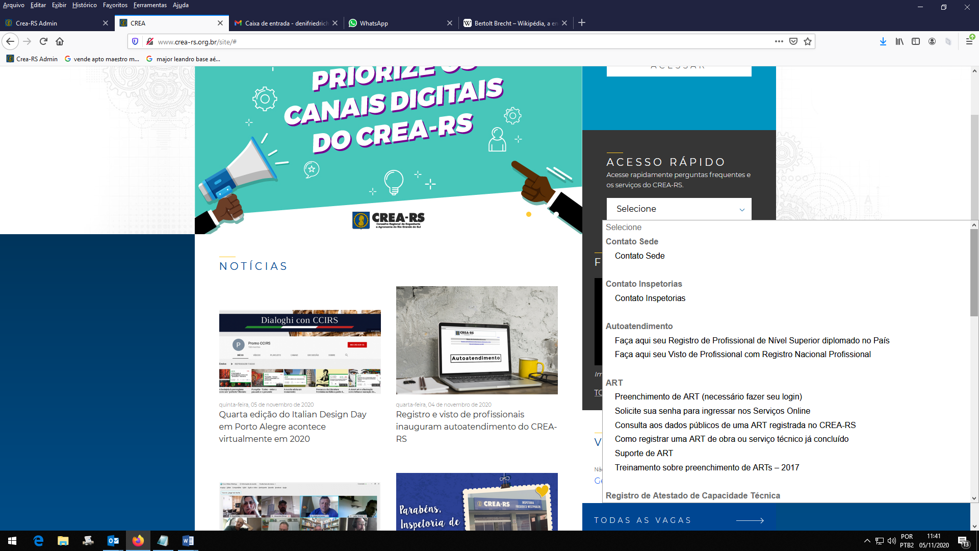 O link para o Autoatendimento está disponibilizado na aba PROFISSIONAL ou aqui: http://apolo.crea-rs.org.br:8080/apoloaplsrv01/servlet/org.crears.apolo.prod.hmenu_autoatendimento?,0