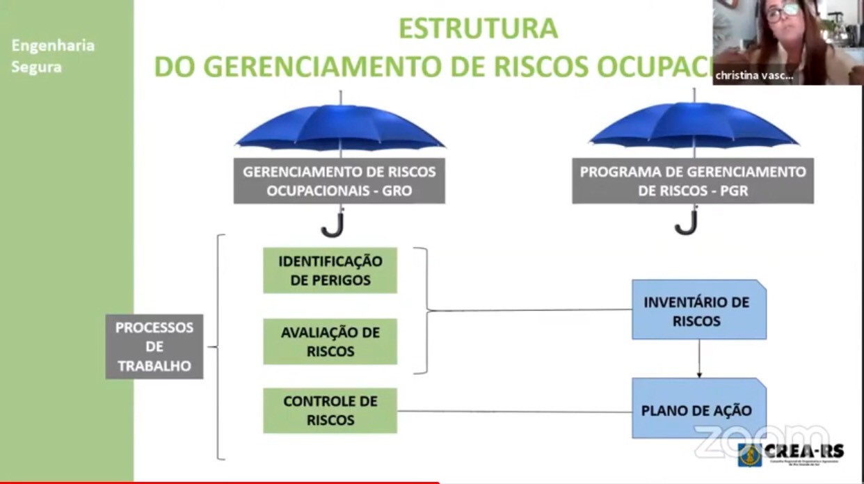 “À frente da presidência do CREA-RS utilizamos efetivamente a Engenharia de Segurança do Trabalho na elaboração de protocolos de segurança na Sede e nas inspetorias do nosso Conselho”, destacou a presidente Eng. Ambiental Nanci Walter, que também mencionou a importância da especialidade no momento atual, com os ricos que envolvem o período de pandemia.