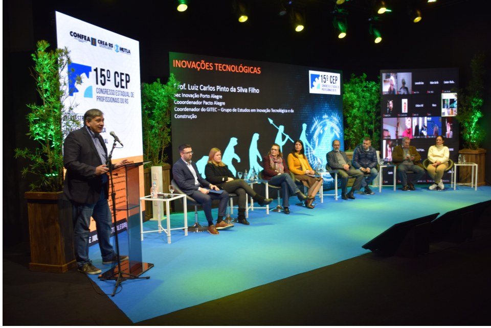 Apresentou o primeiro palestrante da manhã, o Eng. Civ. Luiz Carlos Pinto da Silva Filho, secretário de Inovação de Porto Alegre e coordenador do Pacto Alegre, que abordou Inovações Tecnológicas no Processo de Desenvolvimento Econômico sob a Ótica da Engenharia, Agronomia e Geociências.