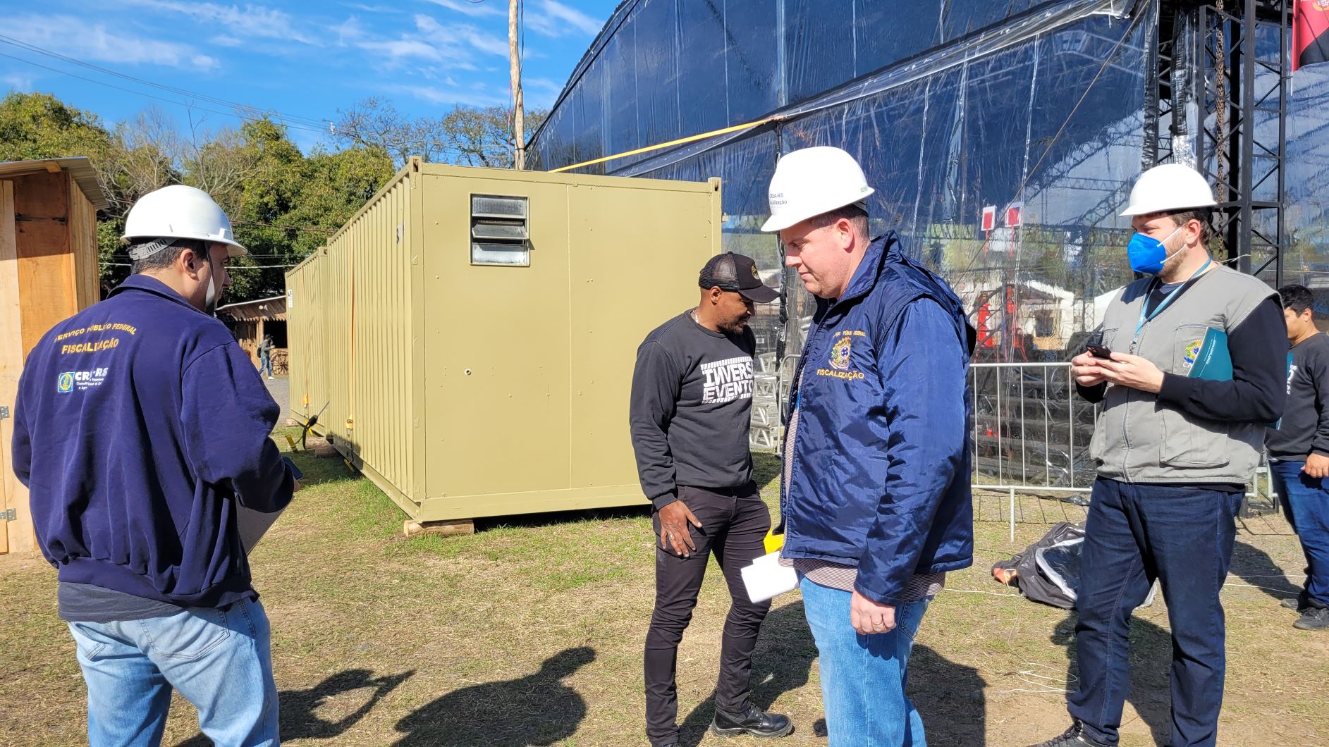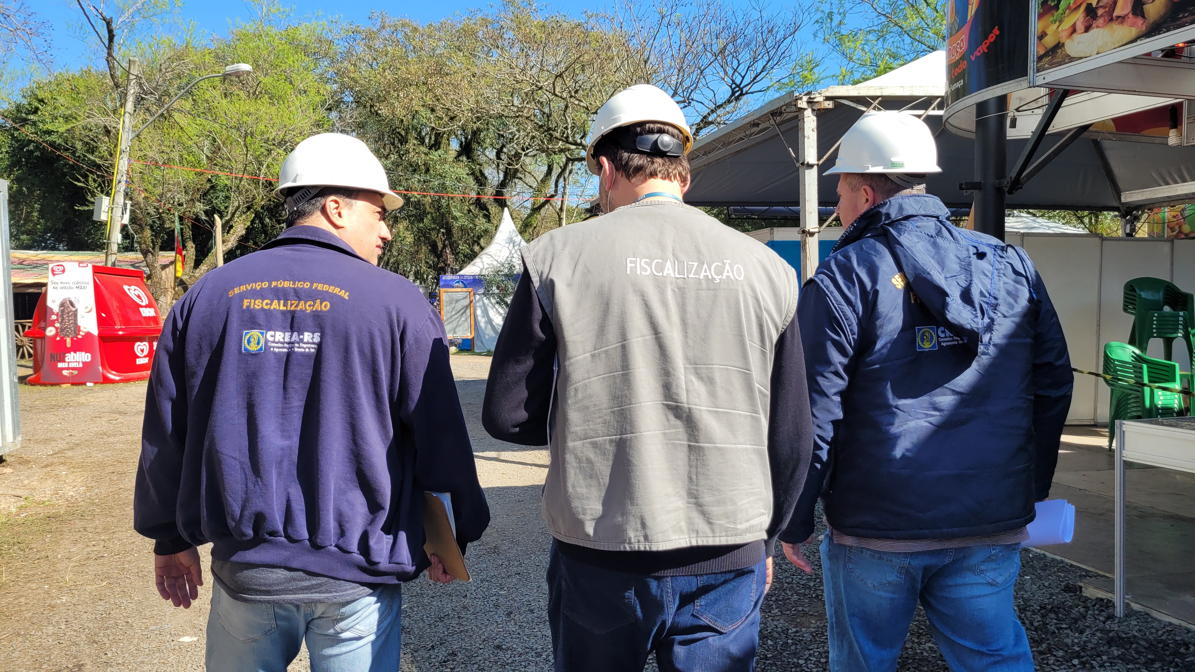 O supervisor da fiscalização do CREA-RS Pedro Ost explicou a ação. “Verificamos a montagem da estrutura, o PPCI do evento temporário, projeto e execução das instalações elétricas e banheiros químicos, dentre outras atividades de engenharia constatadas”, salientou.