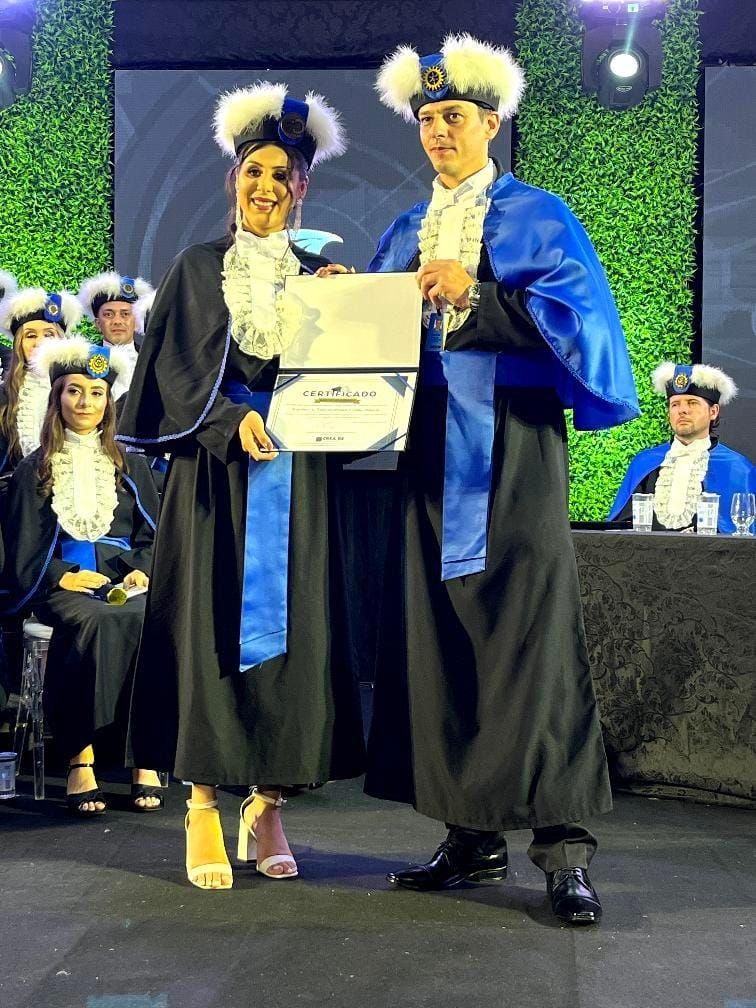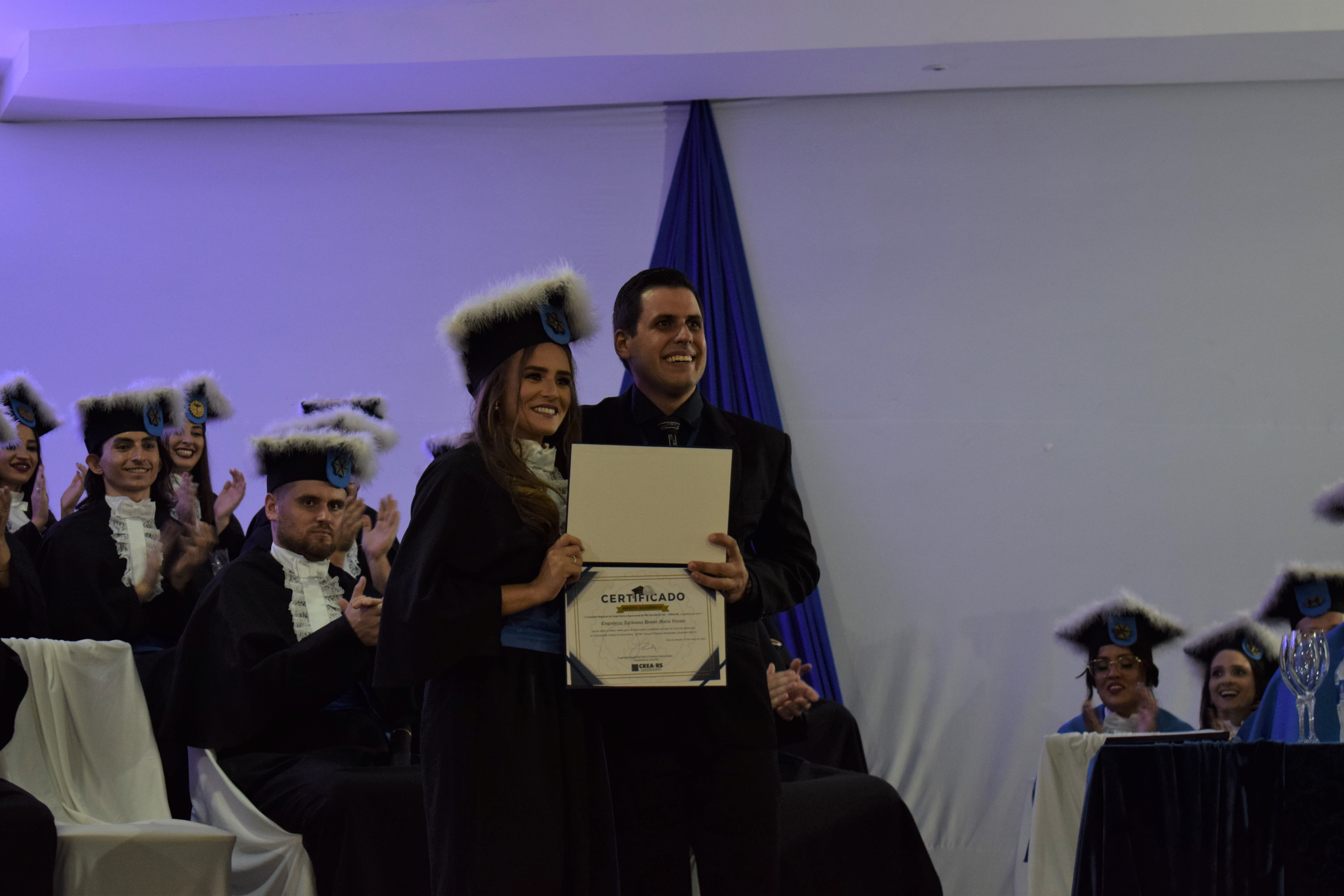 Da Faculdade Murialdo - Famur de Caxias do Sul, a Tecnóloga em Agronegócio Rafaela Perin Alves recebeu seu Certificado da 1º diretora administrativa do CREA-RS Engenheira Química e de Segurança do Trabalho Roselaine Cristina Mignoni.