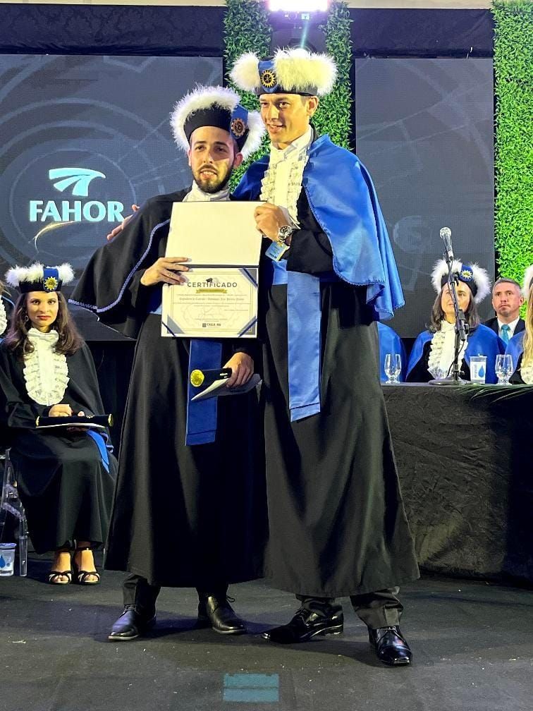 Em Horizontina, da Fahor, o conselheiro da Câmara Especializada de Engenharia Mecânica do CREA-RS Engenheiro Mecânico Rafael Luciano Dalcin entregou os Certificados de Méritos ao Engenheiro Mecânico Gustavo Vinícius da Silveira, à Engenheira de Produção Jéssica Laís Hickmann, ao Engenheiro de Controle e Automação Jean Pereira Piccini, à Engenheira de Alimentos Graciely Cristina Medeiros e ao Engenheiro Químico Chrysttian Matheus Schneider Garcia.