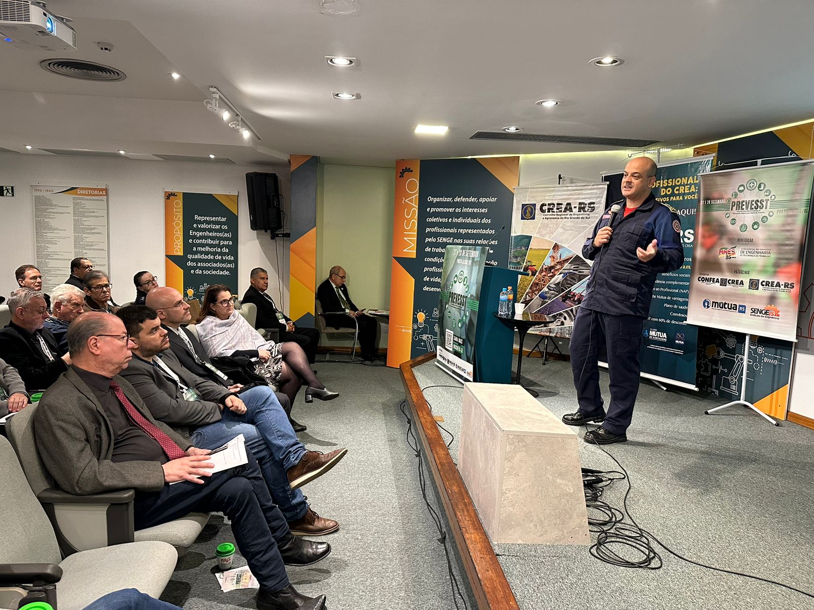 As palestras começaram pelo Comandante-geral do Corpo de Bombeiros do RS, Cel. Estevam Rodrigues, Engenheiro Civil com especialização em Segurança do Trabalho, que destacou o trabalho do @cbmrs e estratégias de prevenção.