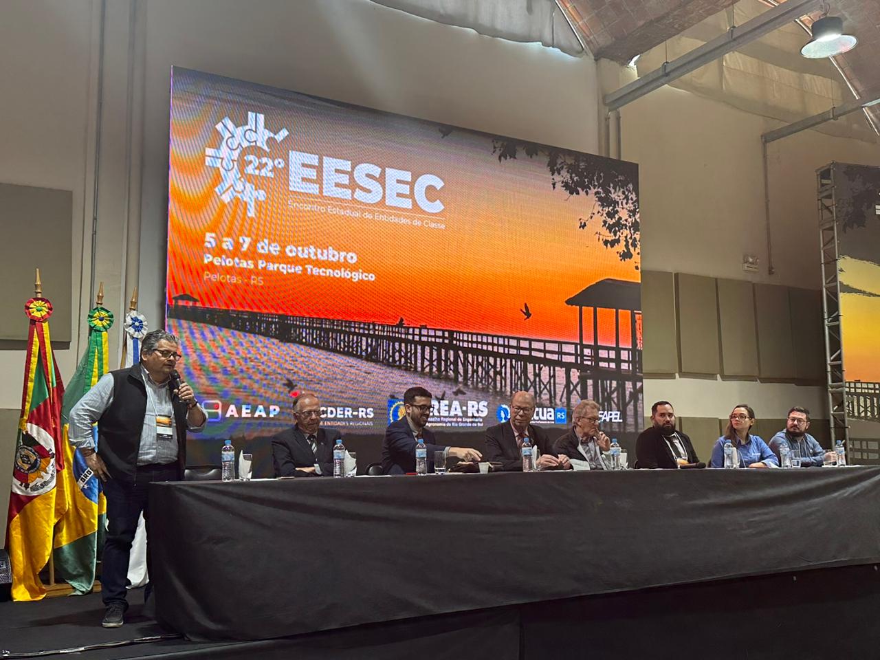 Representantes das mais de 70 entidades de classe que englobam os profissionais das áreas das Engenharias, Agronomia e Geociências de todo o Estado estão reunidos no Pelotas Parque Tecnológico no 22º Encontro Estadual de Entidades de Classe (EESEC), aberto na tarde desta quinta-feira (05).